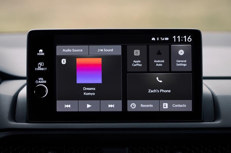 Honda packs everything you might expect and more into the dash tech on the 2024 Honda CR V. This includes a big touchscreen, Apple CarPlay, Android Auto, HondaLink compatibility, and physical knobs to augment voice and touch commands.